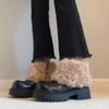 Версия из коровьей кожи ремешок толстая подошва зимние сапоги женские 2025 новые бархатные теплые северо-восточные большие хлопковые сапоги утолщенные пушистые короткие сапоги
