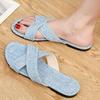 Женские джинсовые тапочки, летние пляжные ретро-сандалии, повседневные тапочки с открытым носком на плоской подошве, женские джинсовые парусиновые шлепанцы для женщин