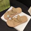 Тапочки с кружевом и жемчугом, женская одежда, плоская пляжная повседневная обувь, модные сандалии, лето 2024, новинка