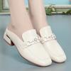 Модные мюли сандалии шлепанцы уличные туфли для женщин на низком каблуке женские тапочки черные кожаные 2024 лоферы квадратные мягкие кожаные повседневные