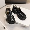 Низкие каблуки-лоферы с квадратным носком, женская обувь с неглубокой подошвой, модные туфли-лодочки с пряжкой на ремне, однотонные кожаные туфли в британском стиле 2024 г.