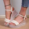 Женские босоножки на танкетке со стразами и пряжкой, женские туфли на высоком каблуке с открытым носком в римском стиле, удобные и легкие, женские туфли-лодочки, сандалии