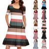 Женское повседневное модное платье миди с круглым вырезом и коротким рукавом с принтом