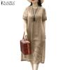 Женское однотонное хлопковое льняное платье с круглым вырезом и коротким рукавом, длинное свободное платье-маятник