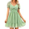 Женское платье с коротким рукавом, V-образным вырезом, однотонное платье с присборенной талией для женщин, летнее повседневное платье