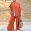Женский комплект из хлопка и льна, однотонный повседневный топ со средним рукавом и круглым вырезом, комплект из 2 предметов