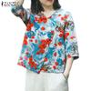 2025 Новые летние женские льняные футболки с цветочным принтом и коротким рукавом, базовые модные топы с круглым вырезом, свободные футболки