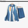 Женский летний комплект из двух частей: блузка в полоску с длинным рукавом и шорты