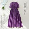 2025 лето новое однотонное хлопково-льняное платье женское Мори ретро с коротким рукавом круглым вырезом талия средней длины платье женское