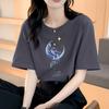 Дизайнерское летнее платье Корейская версия футболка с коротким рукавом женская 2025 новая печать свободный черный топ трендовый