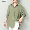 Всесезонная рубашка с отложным воротником, тонкая однотонная повседневная женская рубашка на пуговицах, свободная, простая, с карманом и вставками, женская одежда 2022, простая
