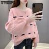 Женский пуловер базовый свитер с круглым вырезом для осени и зимы, свободный и ленивый стиль, вязаный свитер с узлом-бабочкой
