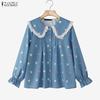 Женская повседневная блузка с кукольным воротником, свободного кроя, с длинным рукавом, с цветочным принтом