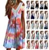Женское летнее повседневное платье больших размеров с v-образным вырезом и короткими рукавами, принтом в честь Дня независимости и карманом до колена
