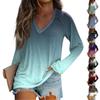 Женская модная свободная футболка с V-образным вырезом и длинным рукавом с градиентным принтом, повседневный топ