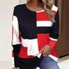 Женская повседневная футболка с круглым вырезом и длинными рукавами, напечатанная в стиле колор-блок, весна-осень