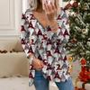 Женские осенние рождественские футболки с длинным рукавом с принтом, свободные, с V-образным вырезом, больших размеров, топы, удобная блузка