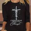 Женская повседневная футболка больших размеров с длинными рукавами и круглым вырезом с рождественским принтом, верхний пуловер