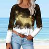 Женские осенние топы, свободная футболка с рождественским оленем и принтом кота, повседневная футболка с длинными рукавами, топ, блузка