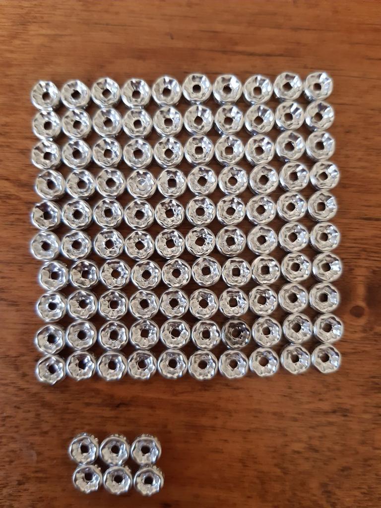 От момента заказа до получения в Москве прошло 26 дней, учитывая, что для отправки собирали 9 товаров в один заказ. Получил в количестве 106 шт. Несколько штук оказались с браком: в двух нет отверстий в центре, один рондель другого оттенка и несколько штук с перевернутыми кристаллами. В целом: цена за 106 шт. перекрывает незначительное количество брака, учитывая, что минимальная цена в розничных магазинах бижутерии колеблется в районе 10 руб. за 1 шт. такого диаметра.