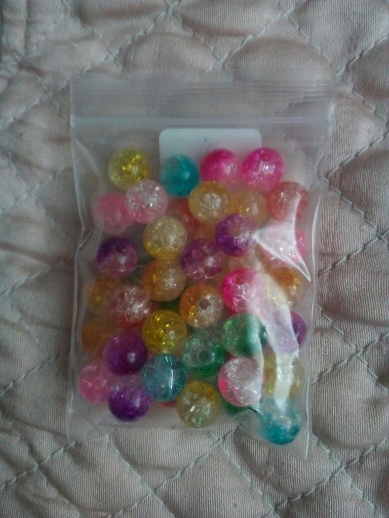 Посылка шла до ставропольского края почти месяц. Упаковано в серый конверт,вместе с другими заказами.в прозрачном пакете лежало 50 разноцветных бусинок.в каждой есть отверстие в центре,есть брак две слипшиеся бусины,не смогла их расцепить.размер бусины 5 мм.есть фиолетовый,розовый,бледно розовый,жёлтый,голубой,зелёный цвета .рекомендую продавца и товпо.приобретайте