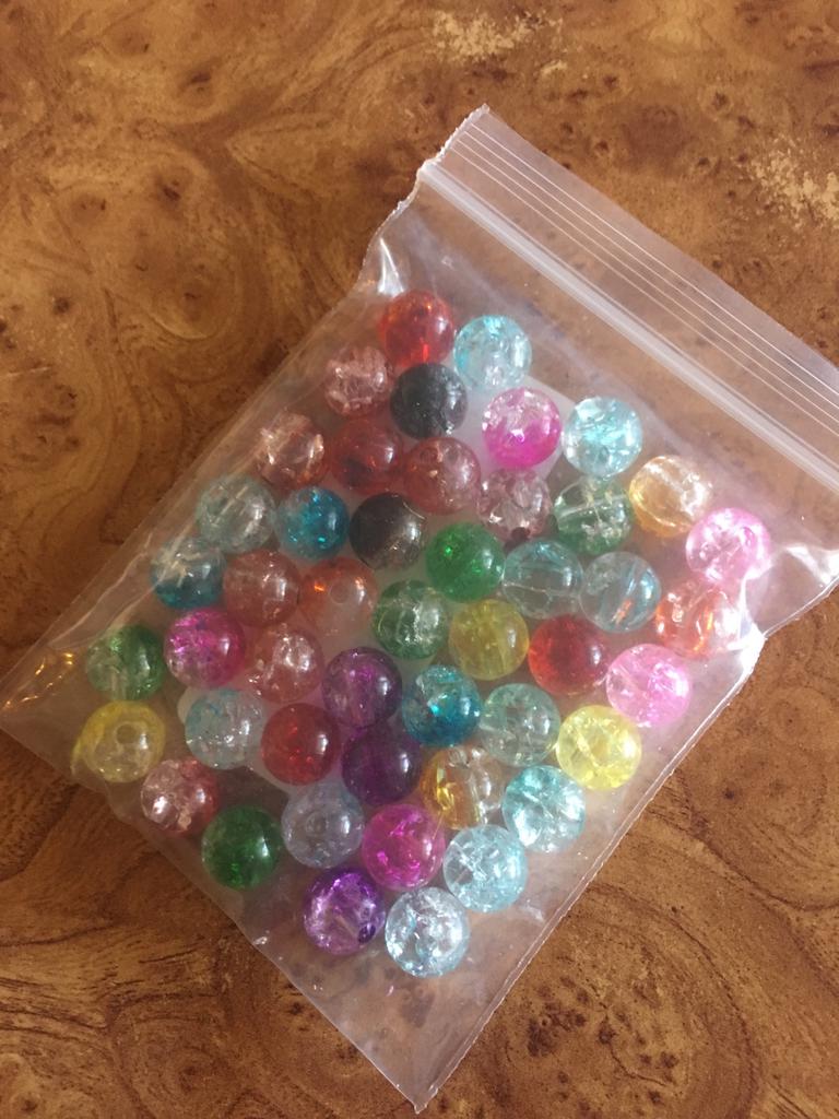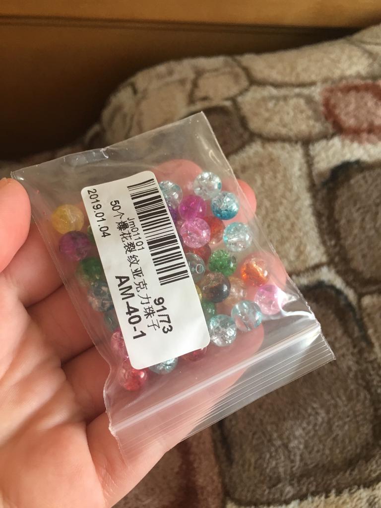 Месяц доставка до Абакана. Бусины хорошего качества. Выполнены из прозрачного пластика с пузырьками воздуха. В диаметре 6 мм с отверстием. Продавец заявил 8 мм. За это сняла звезду. Прислали ровно 50 шт. Пластик без запаха. Цвета яркие и соответствуют фото продавца. Покупала за 57 руб. Товар рекомендую. Продавцу спасибо, не обманул, товар отправил.