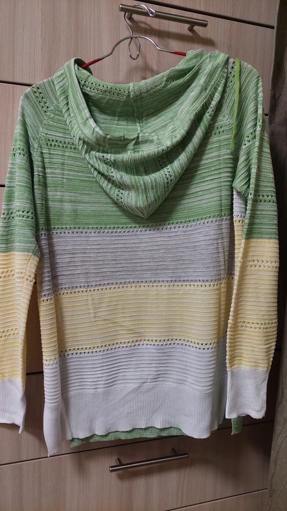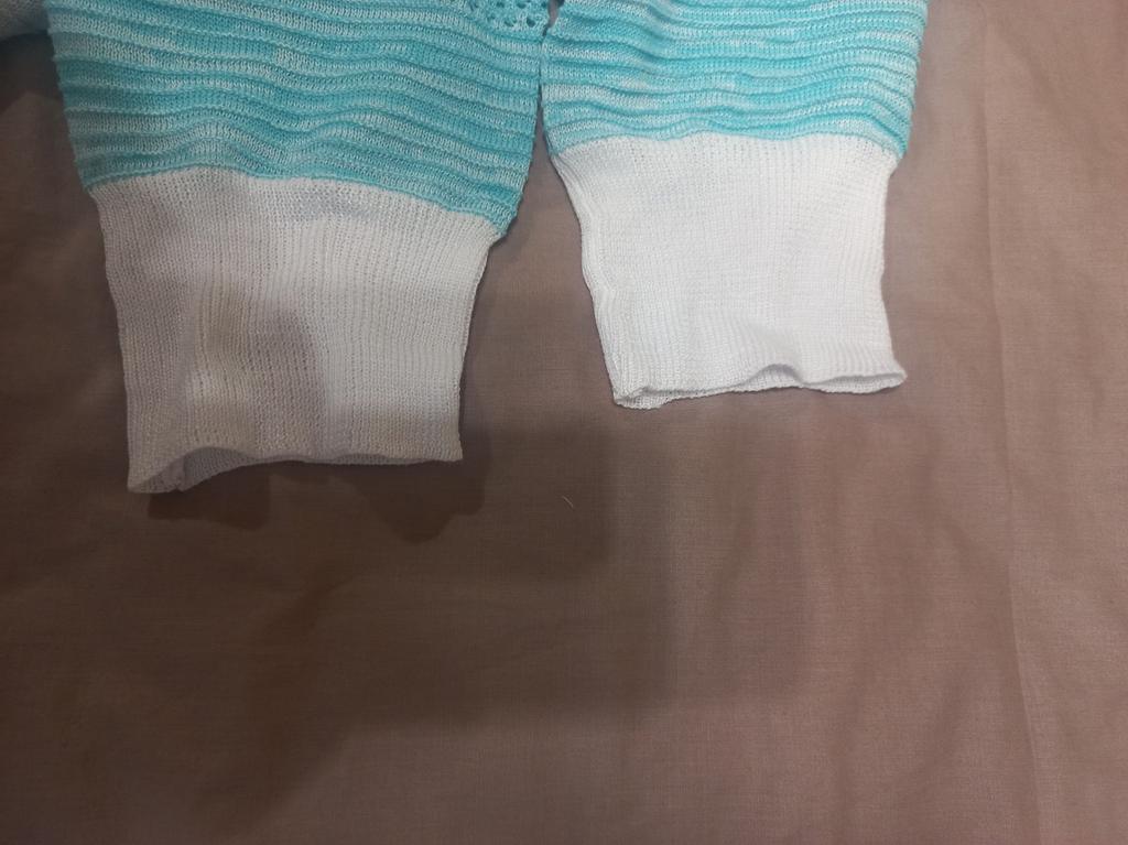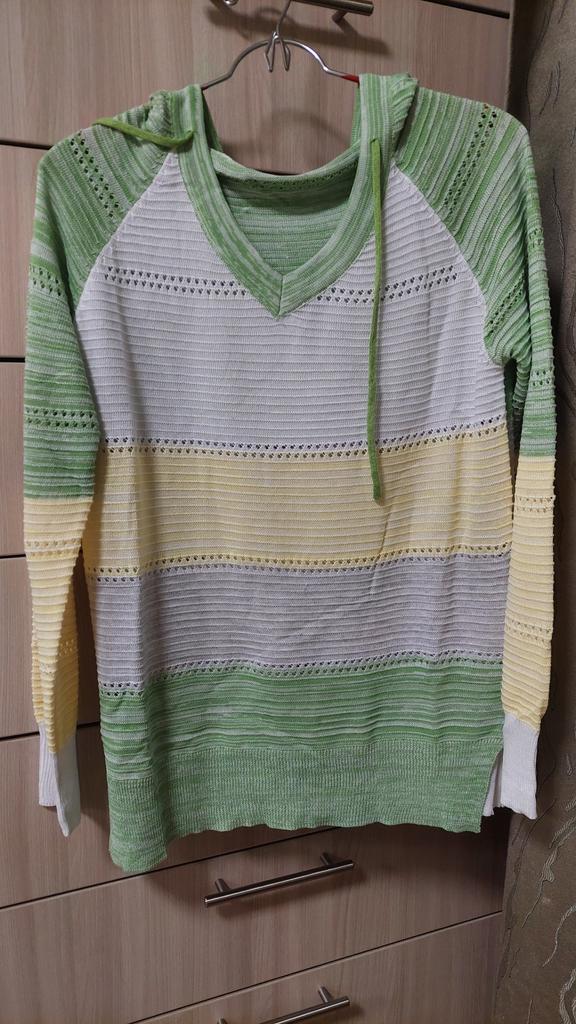 Кофточка по размеру подошла хорошо, рукава длиноваты чуть, но не критично. По материалу: на фото казалась будто вязка плотная, и тёплая предполагается. По факту тонкая кофточка, на лето норм. В прохладную осеннюю погоду не согреет. Цвет приятный зелёный. На фото видно тонкости и отличие от фото для заказа. 5 звезд за общее впечатление, носить буду) Спасибо)