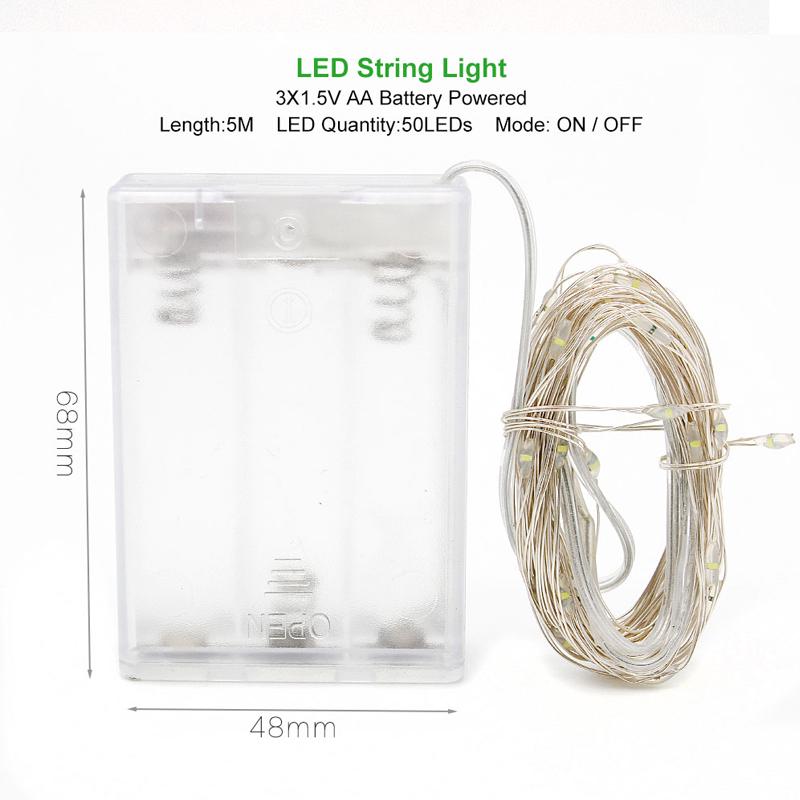5 м, 16,4 фута, 50 светодиодов на батарейках, светодиодная гирлянда, сказочная медная проволока, рождественская вечеринка, декоративная лампа