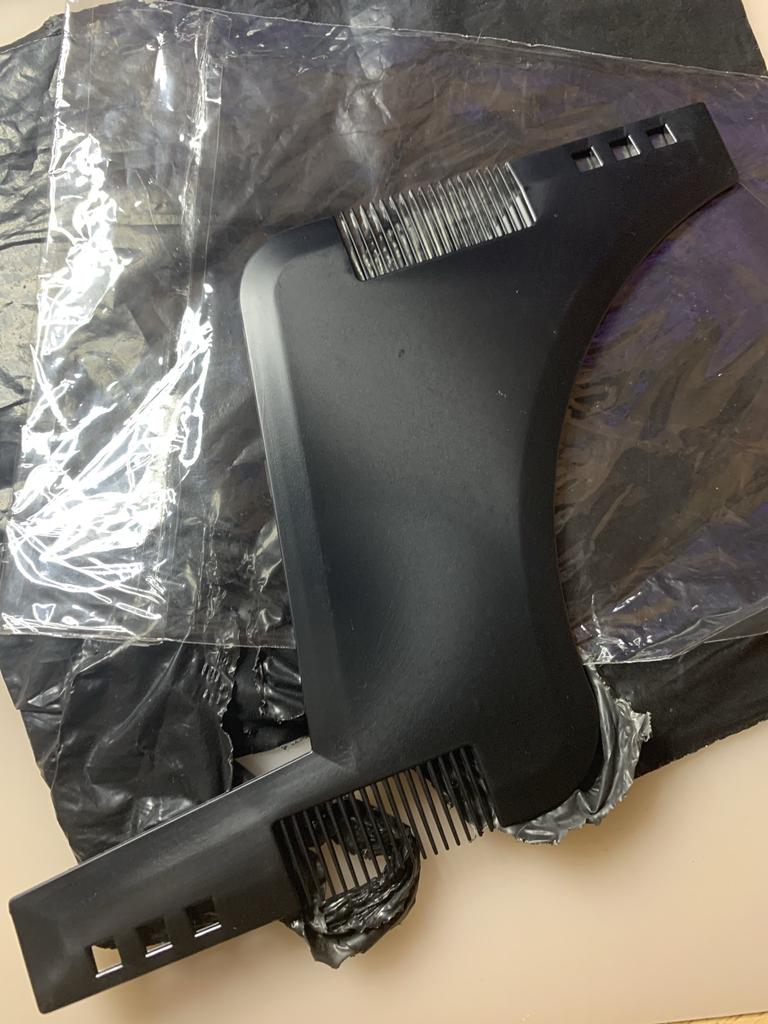 Хорошее лекало для бороды, мужу понравилось 🌿 Дизайн: • 4 рабочих стороны: две расчески и два контура • Можно делать прямой либо кривой изгиб • Подходит для линий бороды, шеи и висков. Можно даже попробовать делать пробор на голове. • Три отверстия служат для определения симметрии • Хорошая конструкция ручки, удобно держать. • Не занимает много места, удобно брать в поездку. Довольно портативно. • Материал - стандартный абс-пластик. Крепкий на вид, так что будем надеяться на его долговечность ;-) 🌿 Доставка: • Пришло за 40 дней • Упаковано в простой пакетик • Все целое, цвет - тот Раньше всегда рисовала мужу контуры карандашом для губ, что ему совсем не нравилось, так как сложно отмыть косметику. Так что такое лекало должно облегчить жизнь :-)