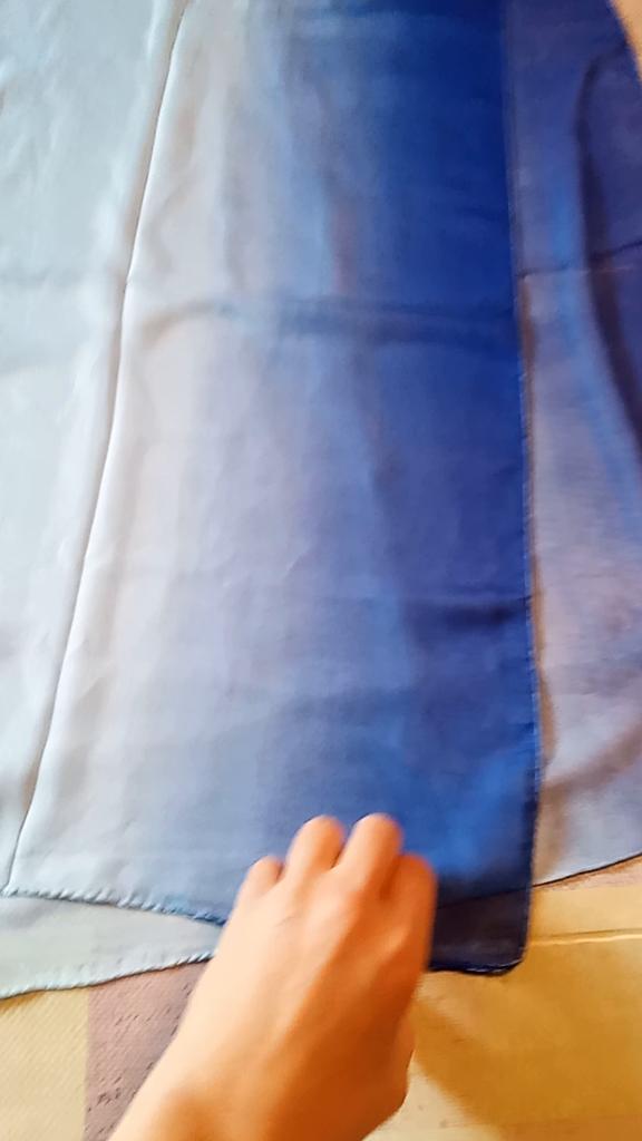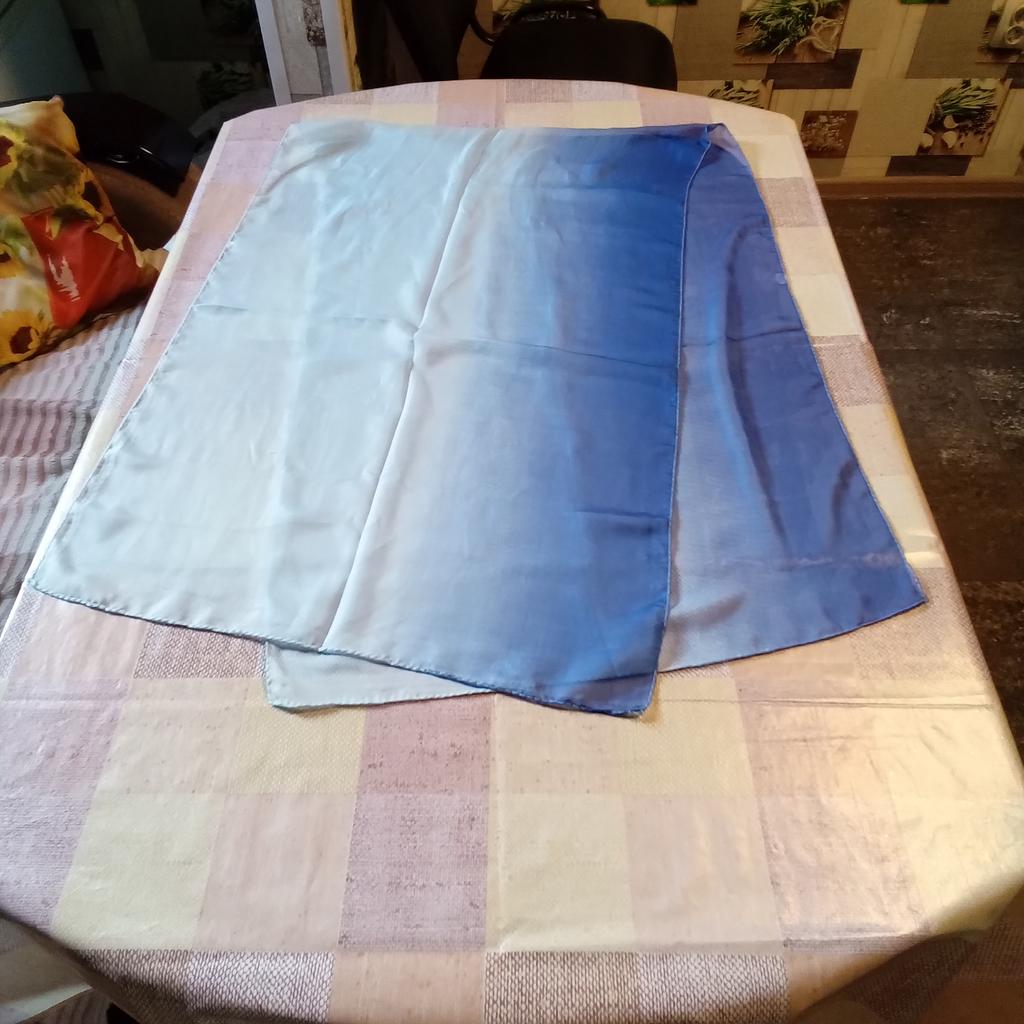 Красивый, яркий, лёгкий шарфик!👍 Цвет я взяла сине-голубой, выглядит как на фото продавца 🙂👍. Размер 160*50 см☝️ По качеству претензий нет:швы ровные, аккуратные; материал похожий на шифон, лёгкий, воздушный, цвет соответствует фото.👍💯 Рекомендую 🤗 к покупке.