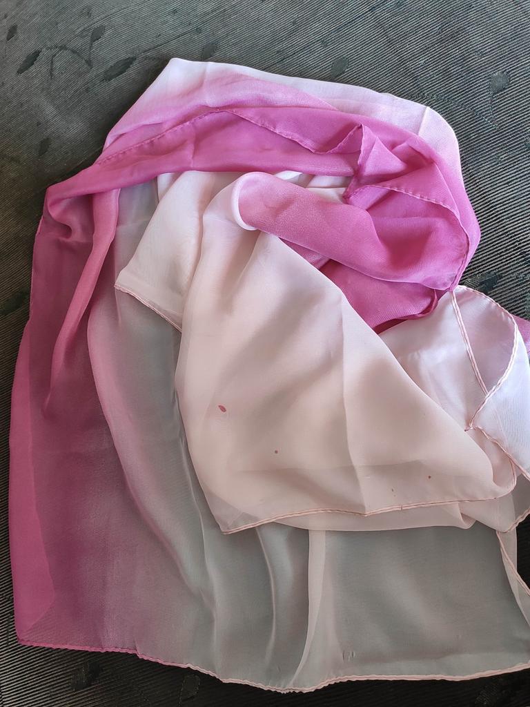 Шарф брала для причёски. Заварачиваю пучок на затылке. 160см - 50см, самое то. Шифон хорошо накладывается. Делаешь пучок, ожеваешь пушистую резинку, накрываешь краем шарфа пучок, короткий и длинный конец сводишь к низу и длинный конец не скручивая оккуратно накладываешь. Самый конец шарфа легко прячешь у головы. Думаю не плохо. Мне нравится. А как вам?