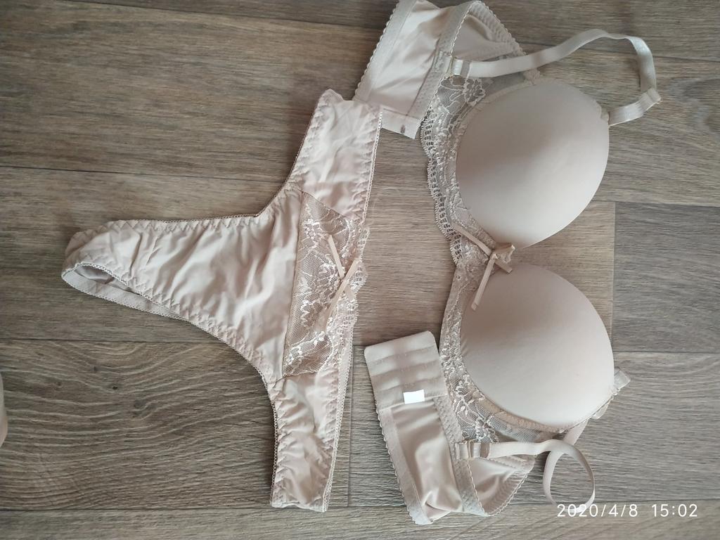 Доставка 1 месяц и 1 неделя УкрПочтой (во время карантина). Бельё норм. Брала на свой 75 В и объем бедер 95 см - 36 В. Всё хорошо подошло. Правда, я думала,что пуш-ап будет немного другой. В общем, на моей груди он не очень-то и заметен,несмотря на то,что он есть🤷 Видно,форма мне не подходит. По качеству нареканий особо не имею. Были лишные нитки и лишняя ткань в швах...но это для меня не проблема. Ткань эластичная,хорошо тянется. Ластовица слегка похожа на хлопок... Кстати,мне очень понравился бежевый оттенок- он холодный и для моей кожи отлично подошёл. Очень универсальный комплект ещё и тем,что лиф гладкий и его не будет заметно под одеждой. В общем,мне нра🥰))
