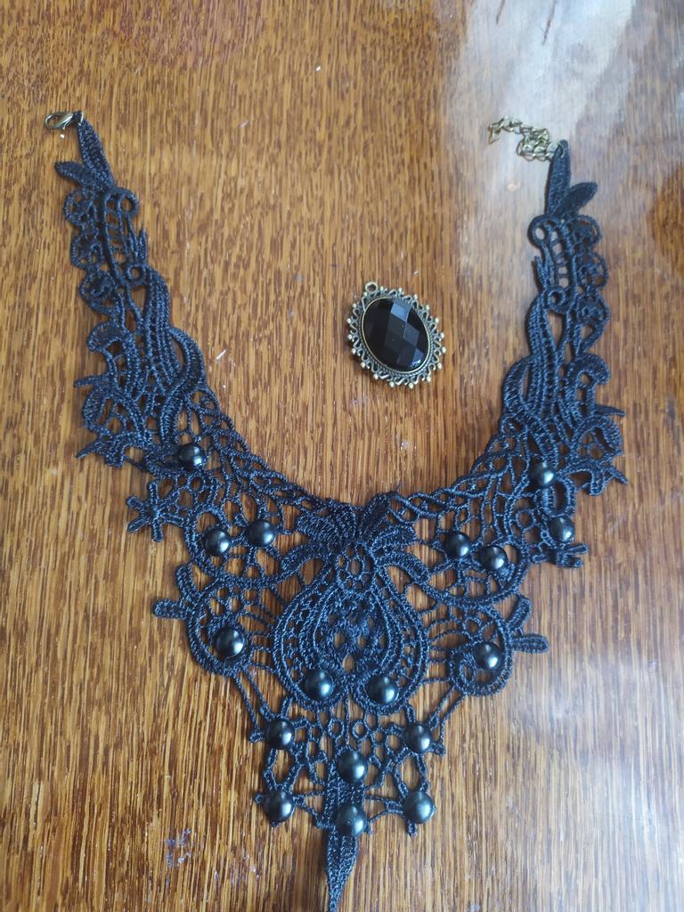 Достоинства: Смотрится красиво и эффектно, с белой блузкой Недостатки: Металл оставил на коже чёрное пятно, причем металл не касался кожи , через ткань рубашки, видимо это медь . После одного дня носки заметила, что ткань кружева порвана. И ещё короткая застёжка, мне не хватило, пришлось придумать , как расширить.