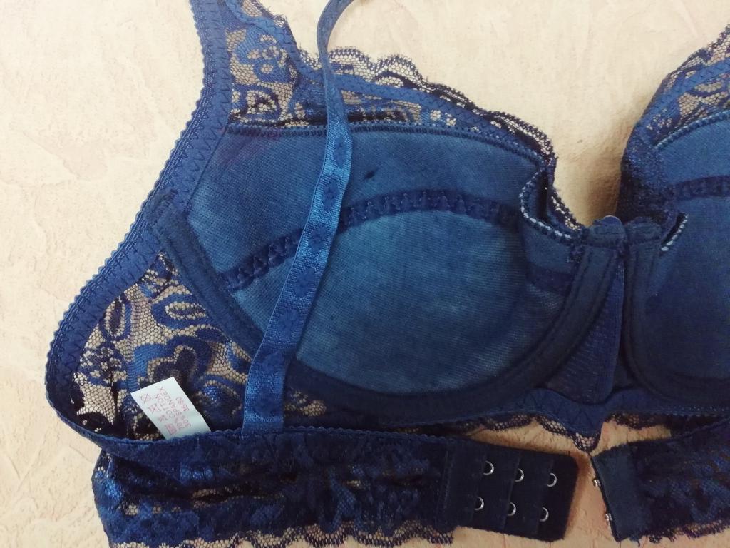 ✔️Доставка до Алтайского края три недели, что довольно быстро, за что хвалю. ✔️❌Отслеживался товар только до Москвы, дальше местонахождение заказа было не известно, поэтому не знала, когда именно его получу. ✔️Товар пришёл хорошо упакован. Весь целый, без брака, без запаха, без дефектов. Все застежки на месте. ✔️Размер соответствует заявленному. ✔️Цвет я брала насыщенный синий, так и пришло,всё, как на фото продавца. ✔️ Бюстгалтер красивый, кружевной, не колется, очень удобный. ✔️❌ Нету паралона, только подклад. Тут уже на любителя. Кому-то нравятся такие, потому что в них и удобно, и не жарко, кому-то нравится больше с паралоном, например, мне,и тут даже дело не в размере груди, просто с тонким паралоном, грудь смотрится красивее, ничего не выпячивается. Но тут, повторюсь, на любителя, все зависит от груди и предпочтений каждой. В целом, не смотря на минусы, которые я выделила, мне понравился. Стоит того, чтобы брать👌