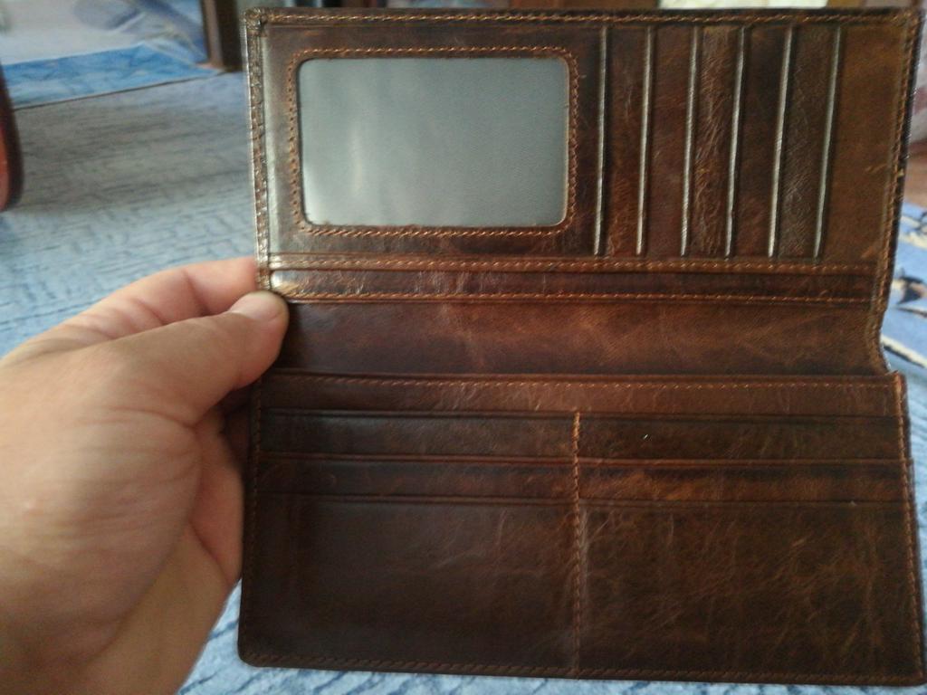 Кошель пришёл, удобный , прикольный эффект потертости 👍😁швы ровные за эту цену доволен на все 100 , продавца рекомендую👍👍до Германии шла посылка 3 недели🤝продавцу благодарность