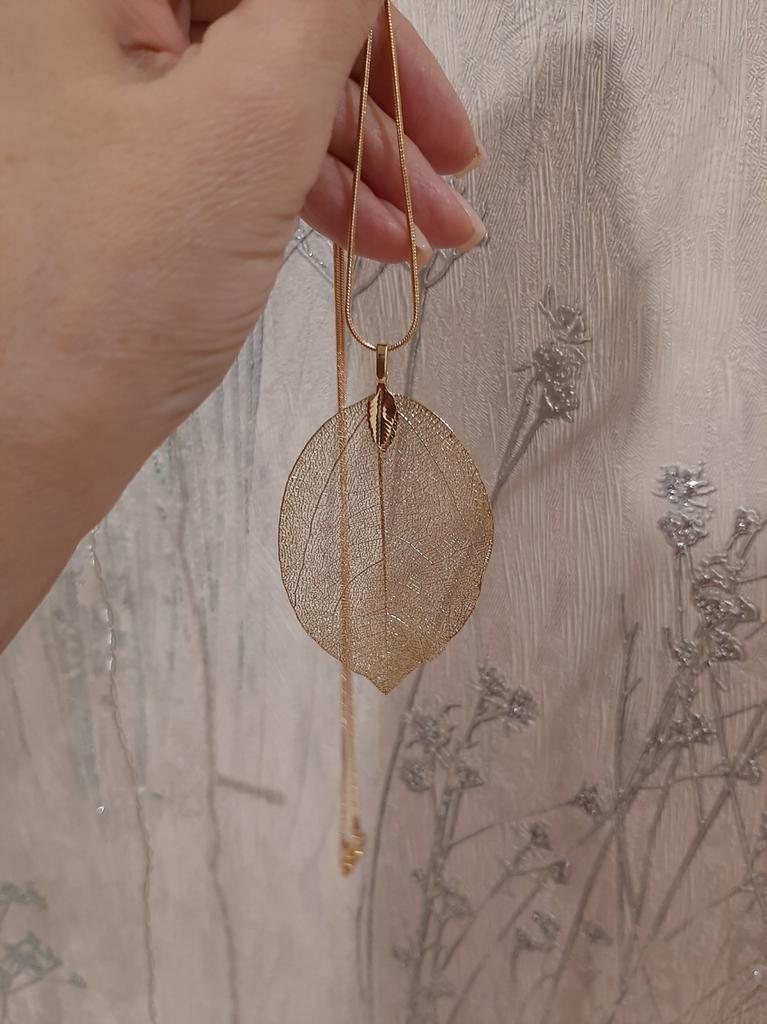 Всем привет!☀️ Обзор на кулончик-листик с цепочкой. 🌿 Получила кулон с цепочкой.Уже заказывала такой кулон в серебристом цвете, решила, что и в золотистом нужна такая красота. 🌿 Кулон листик с цепочкой - очень изящное, филигранной работы украшение! Я от него в восторге! Такой удивительный, сказочной красоты, тоненький листик, такой как кружевной, как настоящий! Любуюсь этой красотой. Застежка обычный крабик, цепочка длинная, можно одевать украшение не растегивая. 🌿Смотрится чудесно! 🌿Пришел кулон, упакованный в почтовый пакет с пупыркой. Покупочкой очень довольна. Рекомендую! Спасибо продавцу.❤