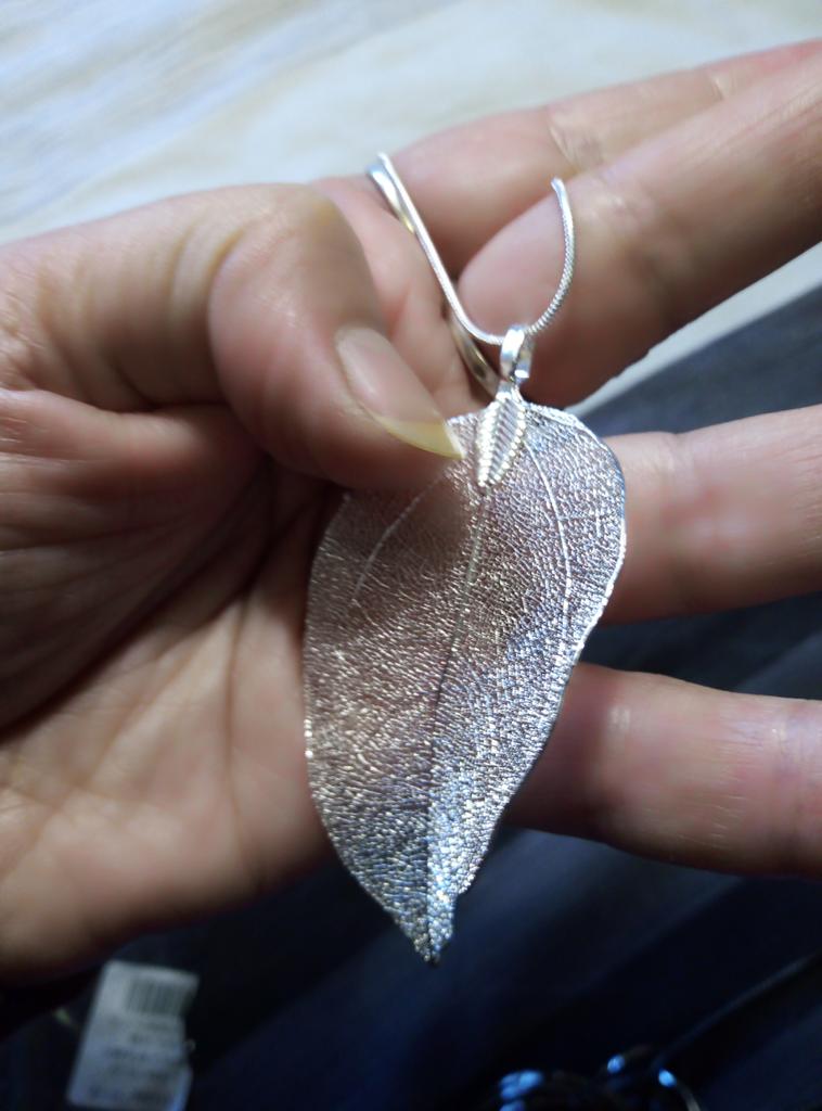 Замечательный листочек! Пришел в пупырчатом пакетике, вложен также еще в прозрачный. Вид имеет изделия из стерлингового серебра. Создается впечатление настящего листочка со всеми прожилками. Листочек легкий , воздушный, нарядный, к тому же, цепочка выполненна качественно и очень красивой формы. Давно присматривалась, купила и получила ощущение праздника! Посмотрю как долго будет носиться, не почернеет ли, но сразу приобрела в трех разных расцветках! Продавца рекомендую.