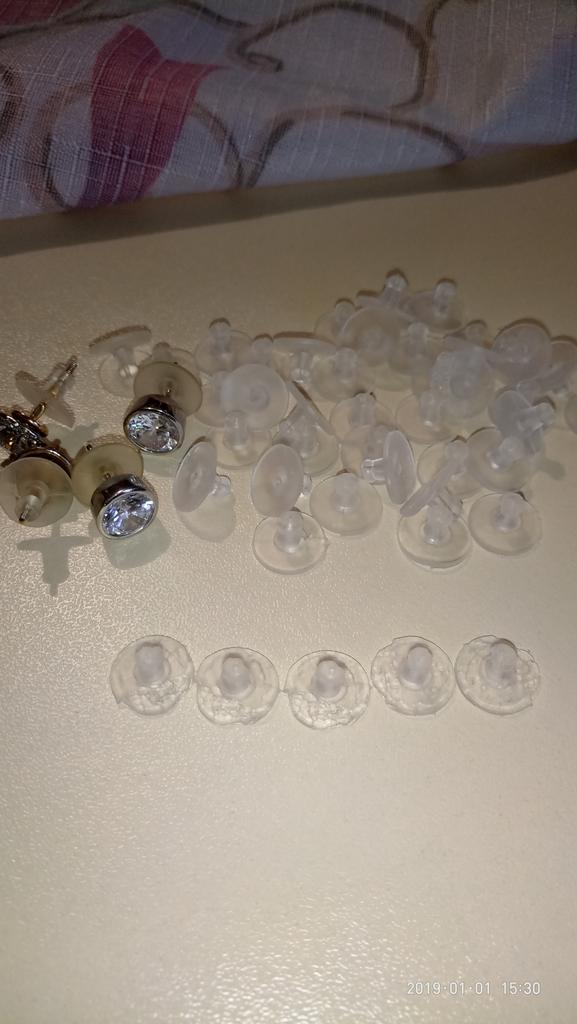 Получила то,что ожидала! Силиконовые,свою функцию выполняют на отлично. Хорошо и прочно фиксируют серьги пусеты на ухе,не впиваются в отверстие в ухе в отличии от металических(родных) В уваковке попалось 50 шт. ровненьких и 5 бракованных. Заказ в г. Запорожье ,Украина. По треку через 9 дней после заказа уже было в стране назначения, но до почтового отделения Укрпочты доехало намного позже. В итоге в руки попало через 1,5 месяца.