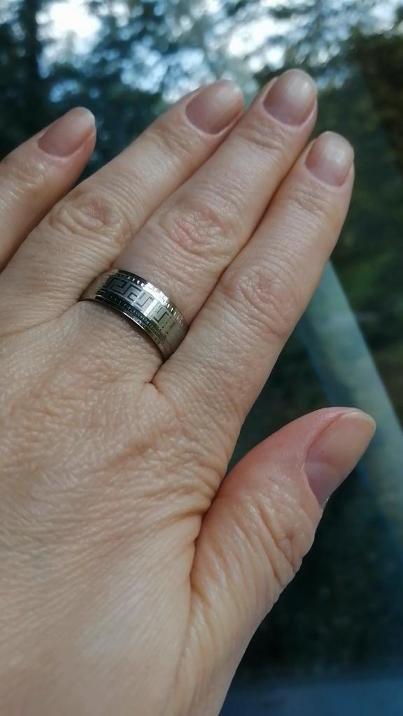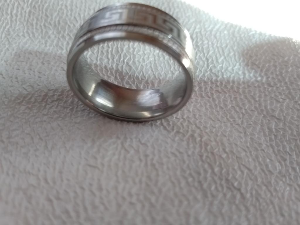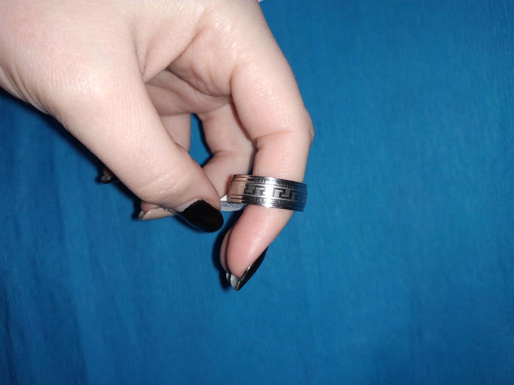 КОЛЬЦО ИЗ ТИТАНОВОЙ СТАЛИ С ГЕОМЕТРИЧЕСКИМ РИСУНКОМ "МЕАНДР" 🔹Очень качественное и красивое кольцо как для мужчин, так и для женщин. 🔹По краям кольца четко нанесены глубокие насечки, в центре на матовой поверхности — геометрический рисунок "МЕАНДР" (греч. - Дорога/лента Жизни). 🔹Металл — титановая сталь, крепкая к износу и долговечная. Цвет серебряный. С внутренней стороны кольцо идеально гладкое, что позволяет его комфортно носить. 🔹Универсальное украшение по демократичной цене. РЕКОМЕНДУЮ! Благодарю продавца и Joom💞. Сроки заказа: 11.09.2023 - 04.10.2023.