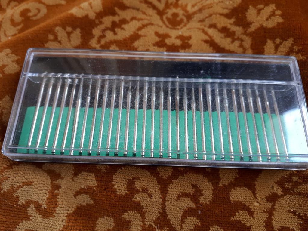 Посылочка шла примерно месяц. Положили в почтовый ящик. Коробочка в целости и сохранности. Покупала за 247 рублей. Попробовала. К моему аппарату фрезы подходят. Дополняю отзыв, спустя время. Качество напыления фрез не очень хорошее. Некоторые фрезы после двух-трех раз использования перестают качественно удалять птеригий и кутикулу.