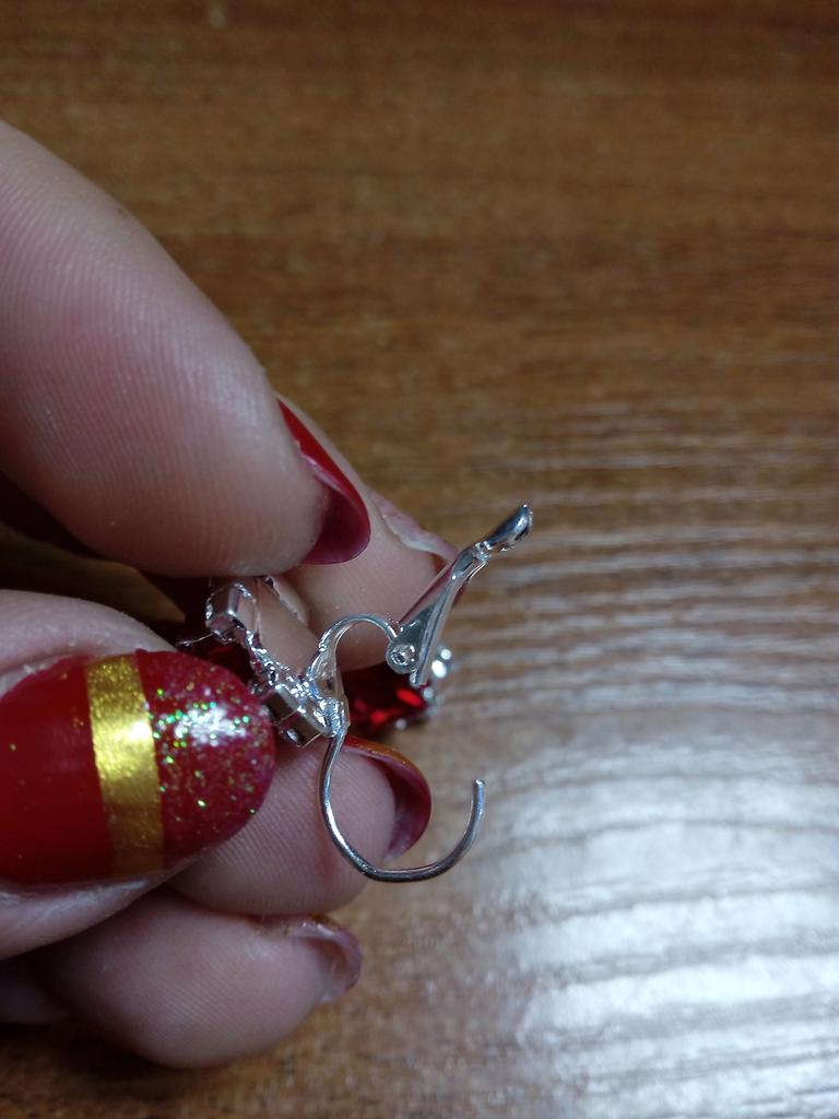 Достойные серьги. Для бижютерии смотрится очень красиво. Металили с качественным покрытием или сам по себе белый. С помощью средства для чистки серебра не облазит. Посмотрим как дальше. Все камни закреплены лапками. Центральный, красный, 0.7/0.7 см. По диагонали 1 см. Порадовала засьтежка. Тугая, на пружинке, точно из уха ни куда не денится. В целом серьги смотрятся очегь дорого. На вид ни когда не скажешь что это бижютерия 👍👍👍