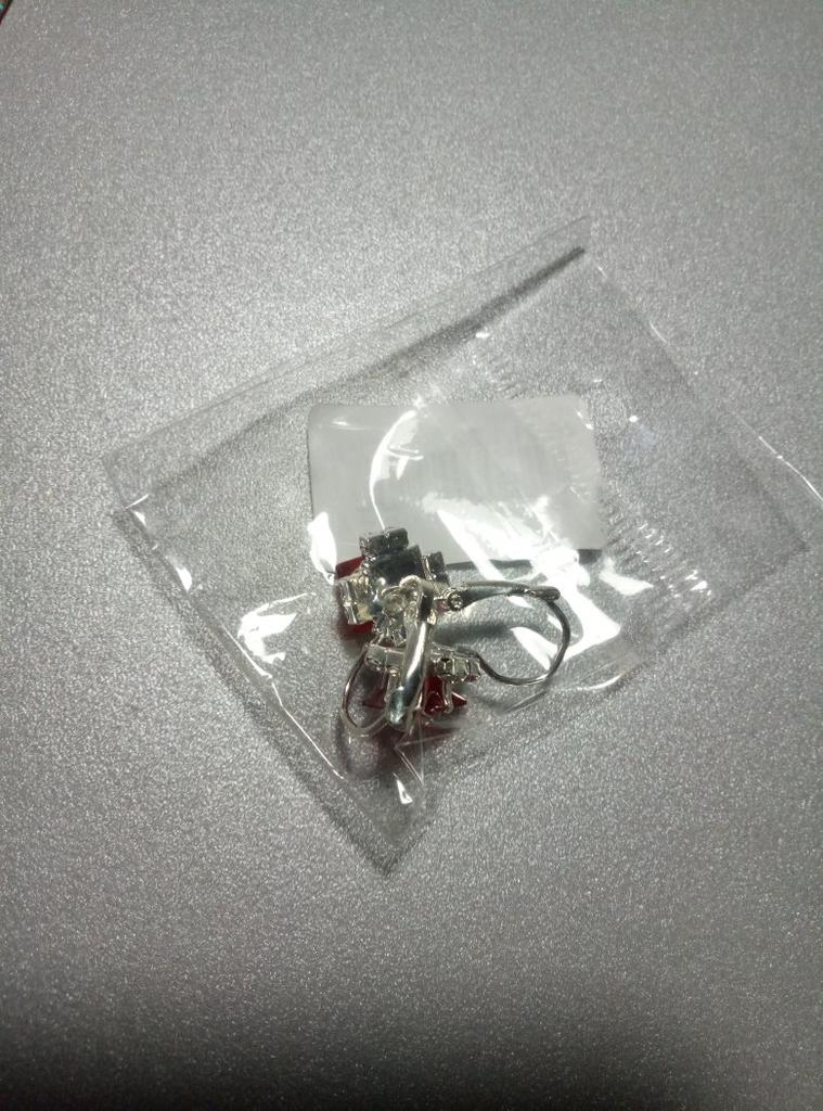 Дужки сережек гнутые, видимо в дороге, при попытке вправить на место, затрещал металл. Камни очень тусклые, похожи на пластмассу. Брала еще с фиолетовым камнем, там всё отлично - и камушки блестят, и металл в порядке.