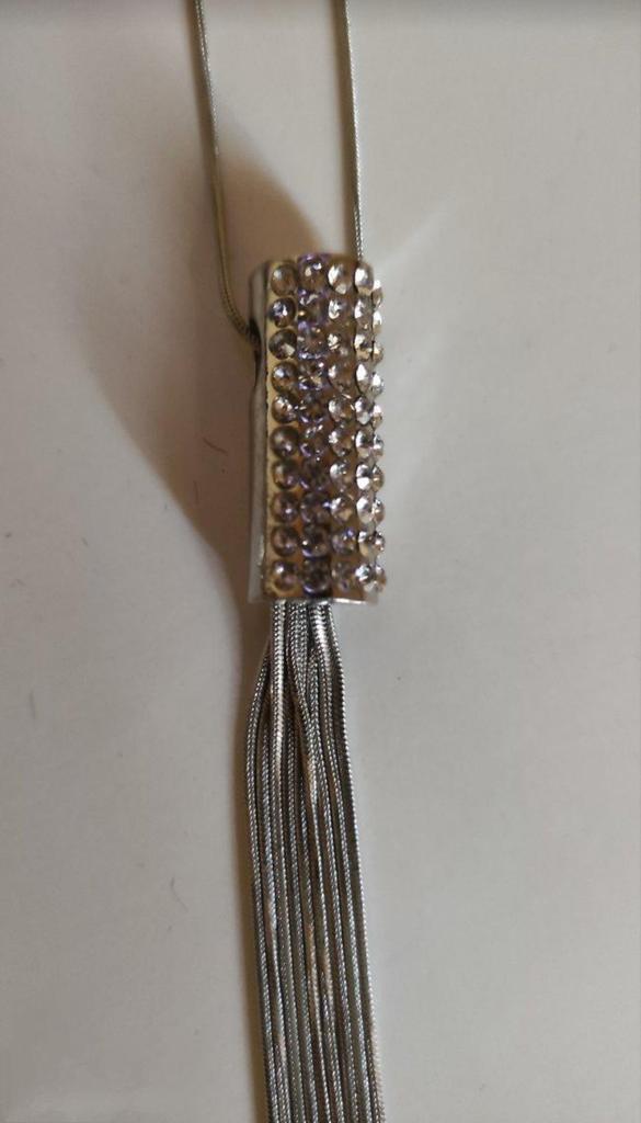 Женская цепочка с кулоном. Качество отличное.👍 Размер цепочки 68 см, кулона 10 см. Кулон выполнен в виде кисточки. Спереди цилиндр инкрустирован сверкающими стразами.💥 Кисточка изготовлена из цепочек мелкого плетения. Этот аксессуар будет прекрасным дополнением к вашему как вечернему, так и повседневному луку. Нежный, элегантный и очень красивый кулон никогда не будет лишним в гардеробе любой женщины.😍