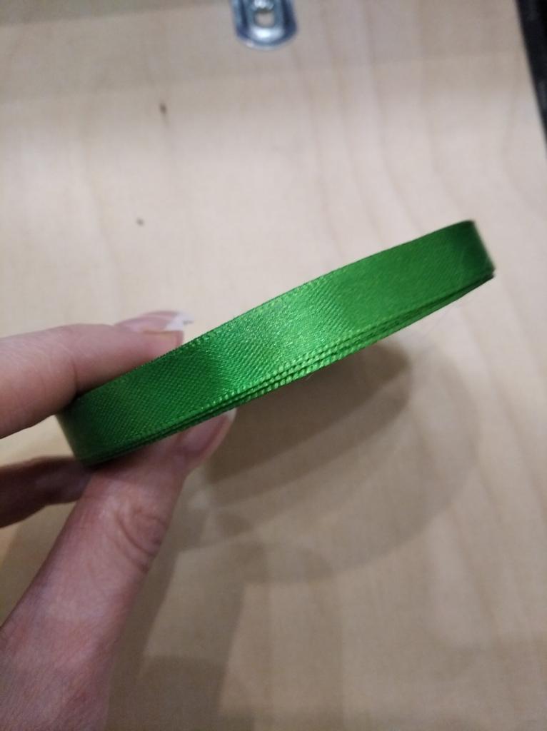 Лента хорошая, заказывала не первый раз, но раньше были другие цвета. К сожалению не совпал цвет с картинкой продавца, за это сняла звезду, так как мне эта лента не подходит. В реальности цвет не совпадает ещё сильнее, чем даже на моём фото. У продавца цвет изумрудный, а в реальности цвет свежей зелени. Поэтому, кому важен оттенок имейте ввиду, что он не тот, что заявлено :(.