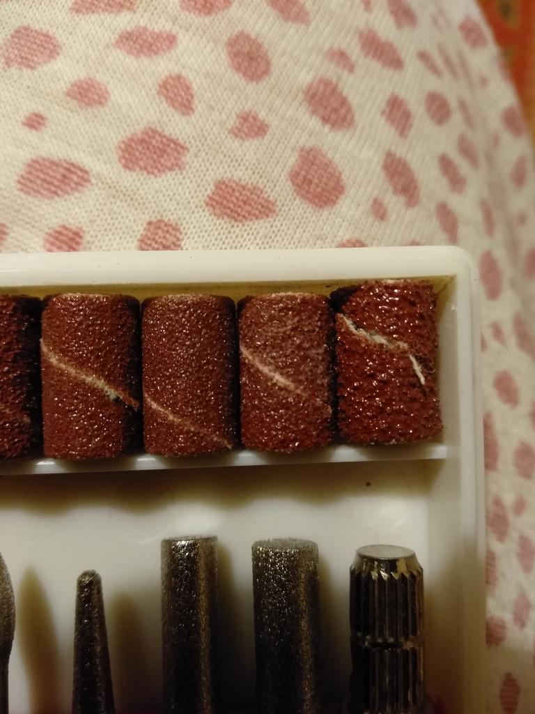 Неплохой. Образивность (грид) на всех одинаковая, только форма отличается. На некоторых зерна нанесены не равномерно прям комочками, которые бороздят ноготь. На коричневых шлифовальщиках торчат нитки, нарушая равномерность поверхности и даже трескаются в этом месте. Машинку чуть посельнее прижмёшь к ногтю - тормозит, а то и останавливается. Чехольчик и подставку самой надо будет подыскивать.