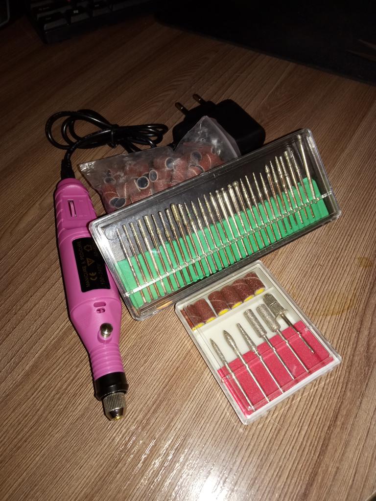 Упаковано все очень плохо, упаковка со свëрлами приехала разбитой. Удивлена, что все остальное цело. Очень маленький провод это большой минус когда делаешь маникюр и особенно педикюр!!! Ну и конечно прибор для домашнего использования, хлюпенький, но с моими задачами справился. Не знаю на сколько его хватит, в целом все нормально.