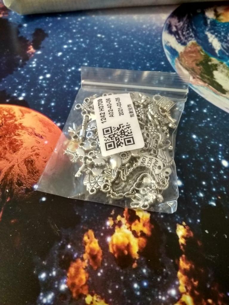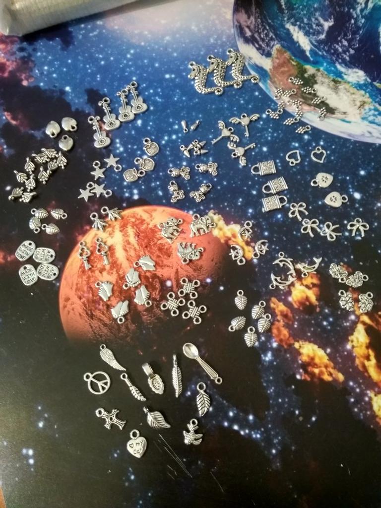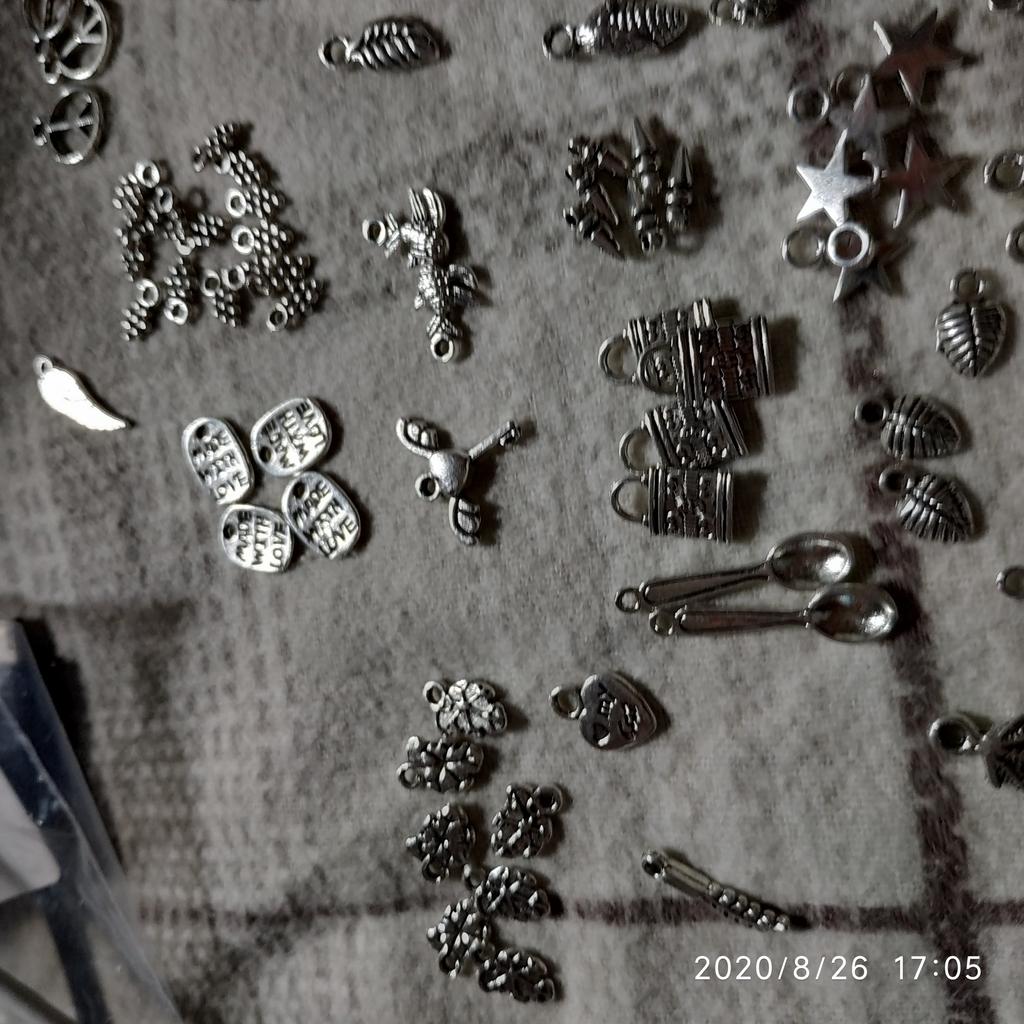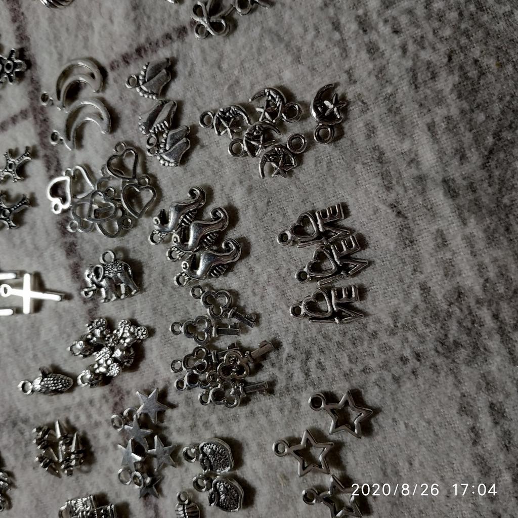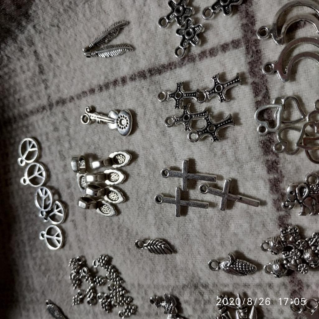 Различные фигурки для самодельного декора бижутерии, а можно и для декупажа применить при декорировании шкатулок например или других предметов. Эти штучки очень меленькие, ключики, замочки, крестики, есть луна, сердечки и прочее. Мелкие и много. Интересные безделушки, с лупой надо рассматривать. В целом мне понравились. Состав из цинка под серебро. Не считала ещё, слишком мелкие, на досуге займёмся. Рекомендую рукодельницам. Джуму спасибо.