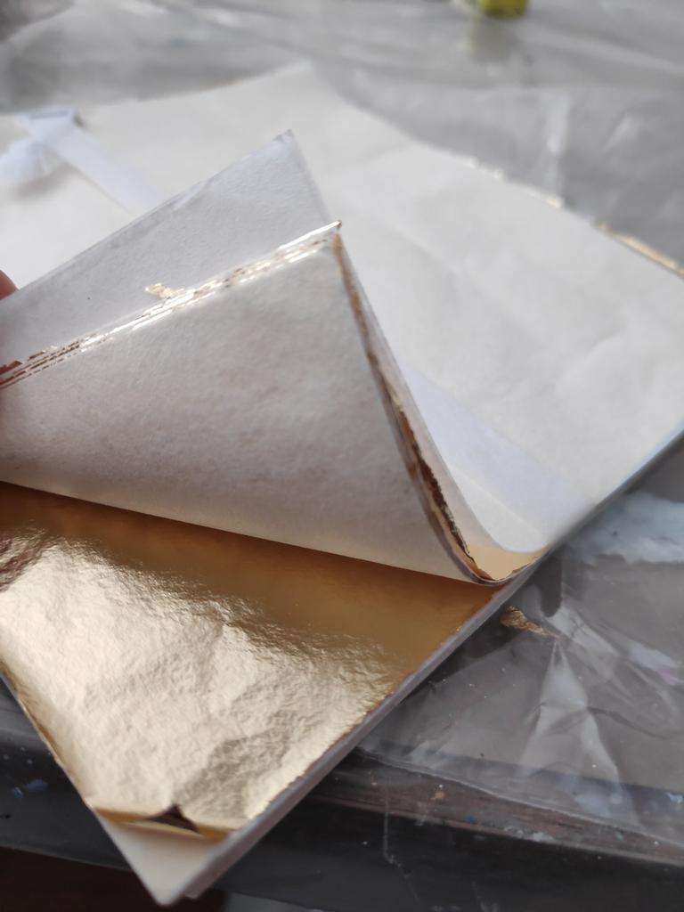 Интересная штука для украшательств. Сусальное золото. Насколько оно из золота не известно, но выглядит неплохо. Теперь осталось научиться наносить его на всякие вещи.