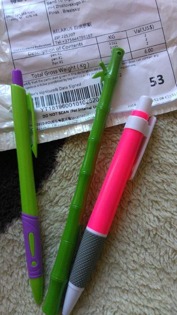 Не три, а две. А это уже больше половины обещанного)) Поэтому и оценка соответствующая)) Делала у этого продавца несколько заказов- там вообще по одной ручке прислали. По поводу самого товара могу сказать следующее- ручки хорошие, пишут тоненько, цвет чернил чёрный. А стоимость на конверте стояла аж 4$. Это перебор