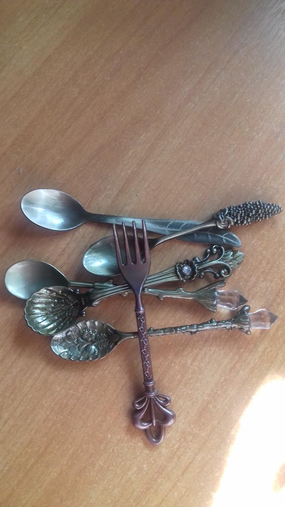 🍴🥄 Кофейные ложечки (и вилочка 🤗) 🍴🥄 Очень милый набор как раз для вкусненького кофе, чаёчка и пироженок. Ложечки, конечно, кажутся уж очень маленькими, но набор столь мил, что глаз не отвести. Наверняка приведет в восторг гостей, когда продадите десерт с вот такими крошками 😉 🍴🥄 Имеют красивое глянцевое покрытие, которое даёт интересный перламутровый блик. Ретро, конечно, на лицо, но, как мне кажется, на фотке продавца они несколько оранжевее или краснее...Ну не суть, все равно красивые и классная замена обычным чайным ложкам 👍